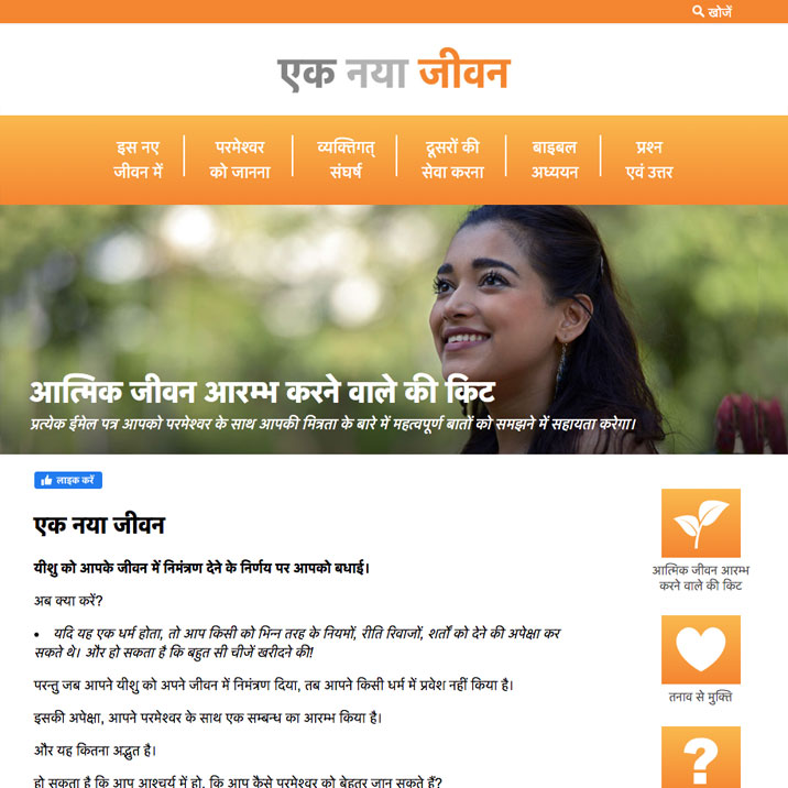 एक बार वहां पहुँच कर, आप तुरंत ही एक मुफ्त “आत्मिक जीवन आरम्भ करने वाले की किट” साइन अप करने का एक निमंत्रण देखेंगे। पूरी साइट आपके लिये है हालांकि यह आपको विशेष सहायता प्रदान करेगी।